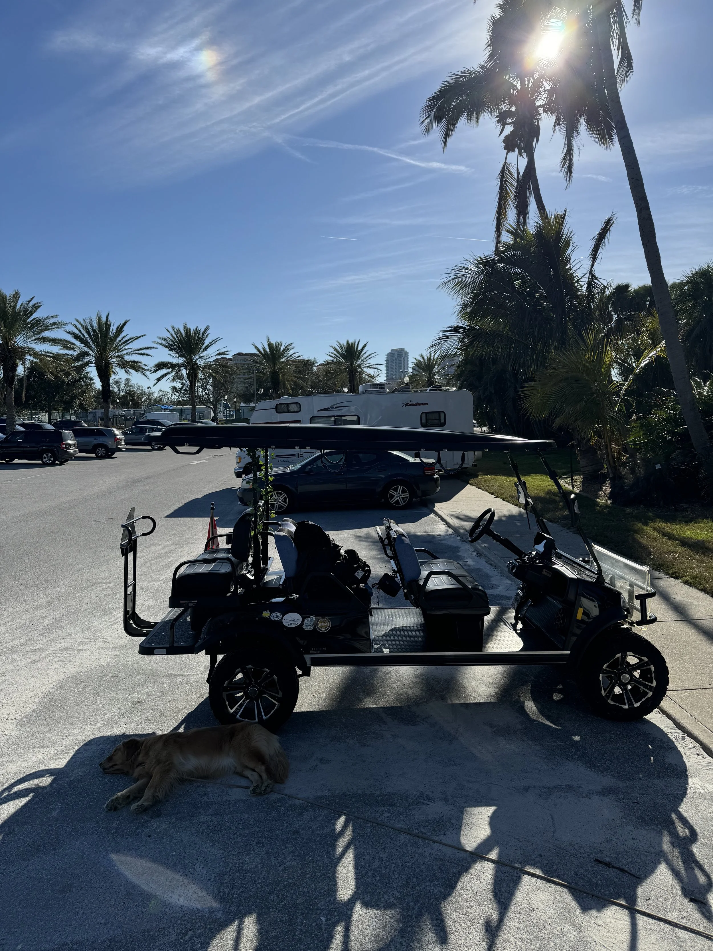 This is a typical itinerary for your St. Pete golf cart experience. 90–120 minutes of sights, stories, and sunshine.